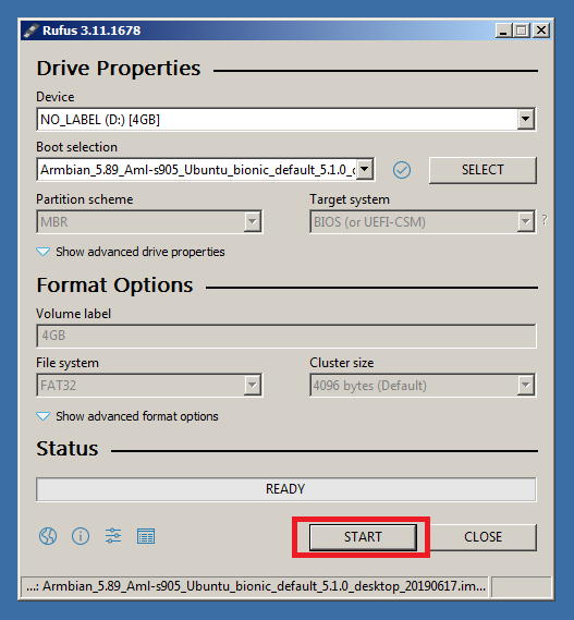 2. Jika kalian sudah memilih file img armbiannya, langsung saja kalian klik tombol start untuk memulai.